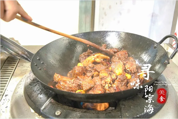 另外,對(duì)醬料的要求也比較嚴(yán)格,要選擇他自己生產(chǎn)的湯池老醬,而且必須是八個(gè)月以上發(fā)酵成熟的老醬來炒制,這樣炒制出來的黃燜火鴨,它的肉質(zhì)和醬香比較濃郁,吃起來就更香更軟糯。