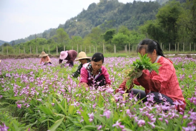 贛州市石城縣大由鄉(xiāng)貧困戶在下伊村中藥材白芪種植基地勞作 黃媛媛 攝
