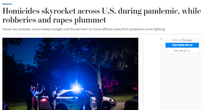 《華盛頓郵報(bào)》:疫情期間,全美兇殺案激增。