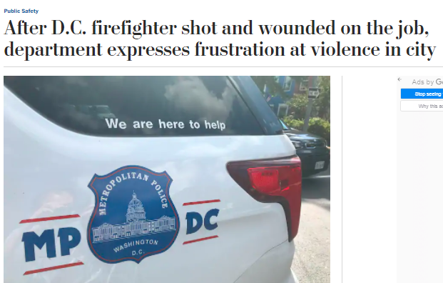 據(jù)《華盛頓郵報(bào)》當(dāng)?shù)貢r(shí)間24日?qǐng)?bào)道,就在剛剛過去的周日,首都華盛頓特區(qū)的一家便利店發(fā)生惡性槍擊事件,一名男子身中8槍。當(dāng)接警趕到的消防隊(duì)員將傷者抬上救護(hù)車時(shí),襲擊者回到事發(fā)地點(diǎn),又開了14槍,打傷了一名消防隊(duì)員和一名站在附近的婦女。而兇手至今在逃。