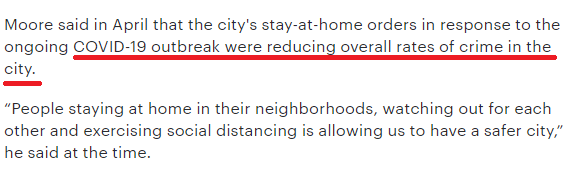美國(guó)《國(guó)會(huì)山報(bào)》以洛杉磯為例分析稱,洛杉磯兇殺案激增與加利福尼亞州5月重新解封有關(guān):6月第一周的發(fā)案率比5月最后一周猛增了250%。而在4月實(shí)行防疫居家令時(shí),洛杉磯的總體犯罪率明顯較低。