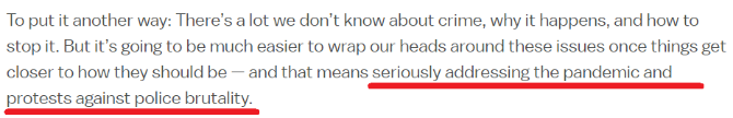 美國(guó)媒體沃克斯(VOX)認(rèn)為,目前美國(guó)政府的首要任務(wù)應(yīng)該是戰(zhàn)勝疫情,從而結(jié)束疫情對(duì)犯罪起到的潛在連鎖效應(yīng)。此外,政府還應(yīng)認(rèn)真對(duì)待美國(guó)民眾反對(duì)警察暴行的抗議活動(dòng)。但不幸的是,疫情暴發(fā)以來美國(guó)政府無所作為。