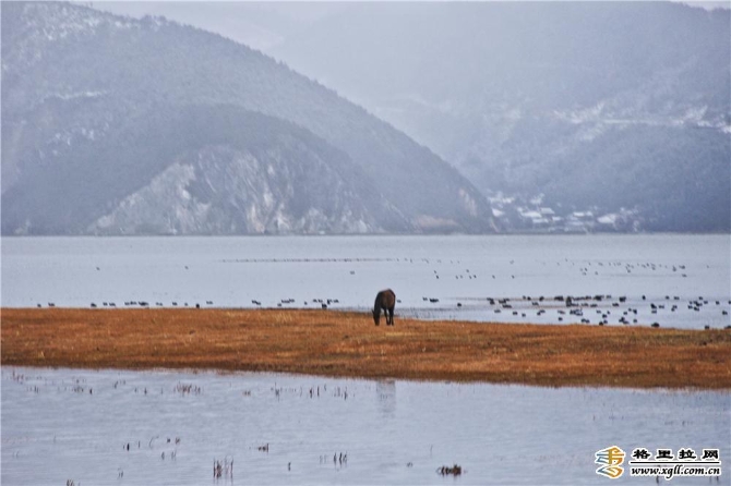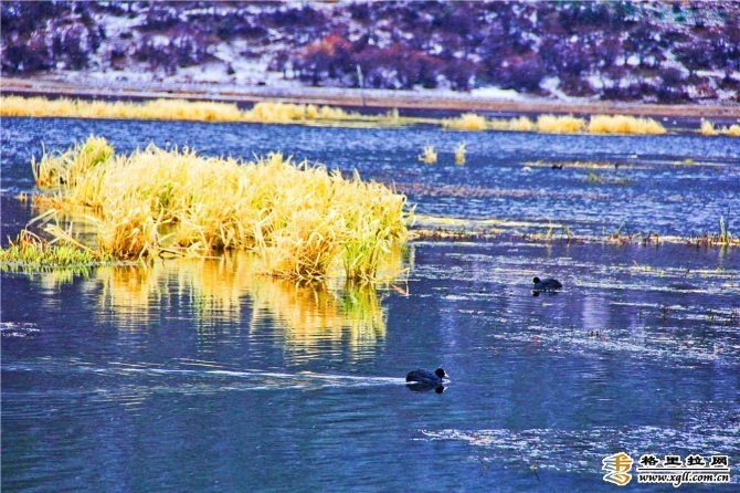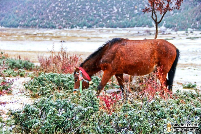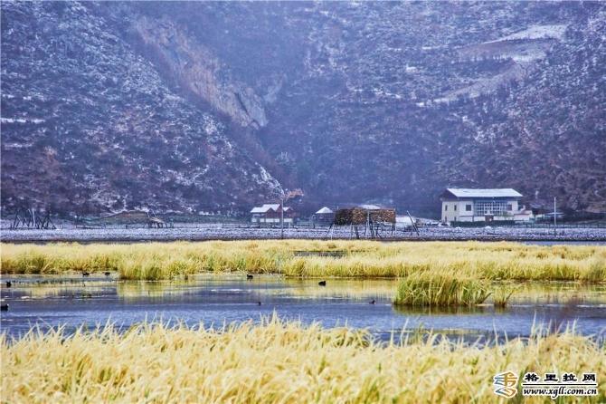 雪中的納帕海銀裝素裹,冬色撩人,波光粼粼的水面與白雪相互映照,村莊在遠(yuǎn)山下顯得異常寧靜,只聽見一陣陣牛馬的銅鈴聲和野鴨的嬉戲,讓人不禁放空自我享受著清新的空氣。