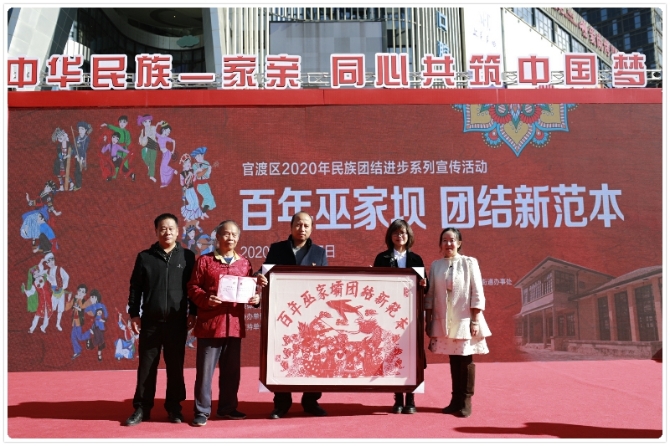 隨后,與會(huì)領(lǐng)導(dǎo)為巫家壩社區(qū)轄區(qū)內(nèi)十家單位頒發(fā)了“民族團(tuán)結(jié)共建單位”的榮譽(yù)牌匾,號(hào)召轄區(qū)單位一如既往地參與到社區(qū)民族團(tuán)結(jié)工作中,為社區(qū)的民族團(tuán)結(jié)工作添磚加瓦。