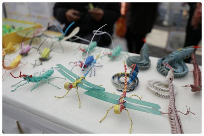 非遺市集上,包括漢族刺繡代表性非遺傳承人高玉武、皮藝雕刻代表性非遺傳承人高?文、面塑非遺傳承人吳應(yīng)德、糖畫(huà)非遺傳承人吳燕瓊、草編非遺傳人史云龍、古建筑五墨彩畫(huà)傳承人張思松等代表帶著他們的作品來(lái)到現(xiàn)場(chǎng)和居民分享。