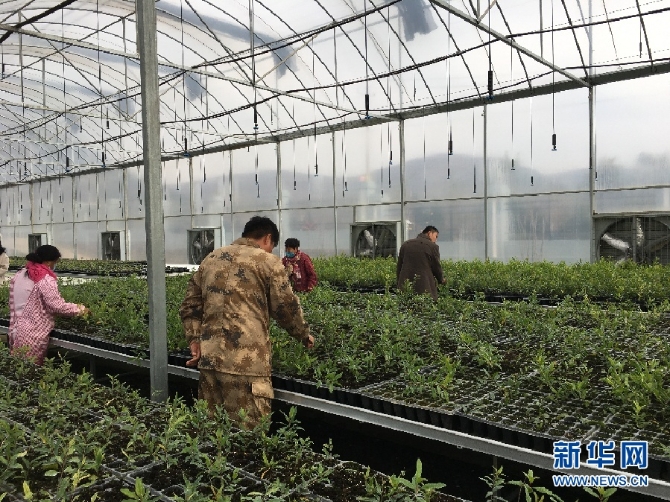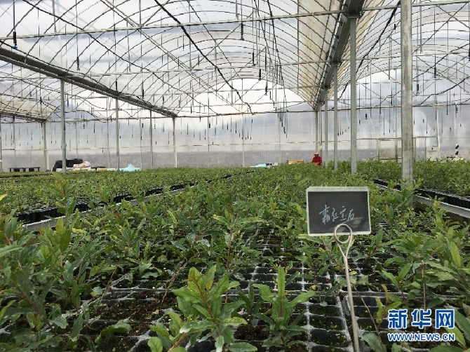 (在溫室中培育的多品種石榴苗。 新華網(wǎng) 于楊 攝)