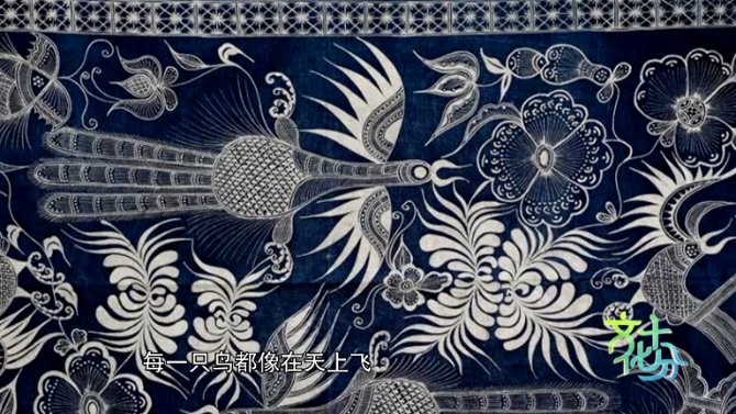 苗族蠟染設(shè)計(jì)師 成昊:蠟染,純天然的染料,那我們是一點(diǎn)化學(xué)染料不要有的,純手工繪畫,當(dāng)然這些在現(xiàn)代的機(jī)械化社會里呢,它們是很復(fù)雜,很耗時(shí)。那比如說我們現(xiàn)在用機(jī)器去印的話,我們可以打出一個(gè)模子無限復(fù)制,但你會發(fā)現(xiàn)它的鳥都是一樣的,沒有情緒的。那我們這里畫娘純手工畫的,每一個(gè)鳥都像在天上飛,每一個(gè)魚都像在水里游,每一朵花你就感覺到它下一個(gè)花瓣馬上要迸開的這種效果,這個(gè)是蠟染的最靈魂的東西。