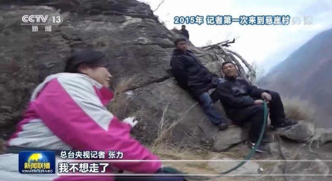 懸崖村本名叫阿土列爾村,因為坐落在垂直落差八百多米的懸崖上,又被稱為“懸崖村”。2015年底,記者第一次到懸崖村時,4公里的懸崖路上有十幾處用木頭和藤條搭成的梯子,峭壁上能下腳的地方不到巴掌大,進一趟村得用4個小時。