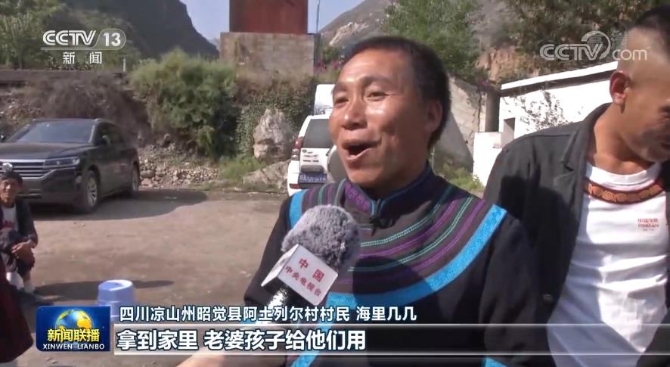 四川涼山州昭覺縣阿土列爾村村民 海里幾幾:今年高興,拿到錢了!拿到家里,老婆孩子給他們用。