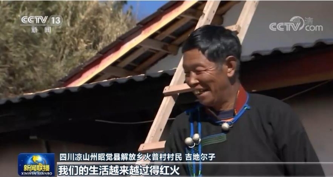四川涼山州昭覺縣解放鄉(xiāng)火普村村民 吉地爾子:現(xiàn)在一家三口子就是15000~16000元左右,我們的生活,我們老百姓越來越過得紅火。