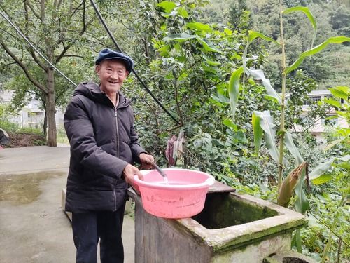 云南省鎮(zhèn)雄縣中屯鎮(zhèn)齊心村70歲的貧困戶王建春在家門口接水(9月23日攝)。新華社 記者林碧鋒/攝