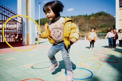 云南省鎮(zhèn)雄縣以古鎮(zhèn)巖洞腳村幼兒園的孩子在操場上玩耍(11月11日攝)。新華社 記者王冠森/攝