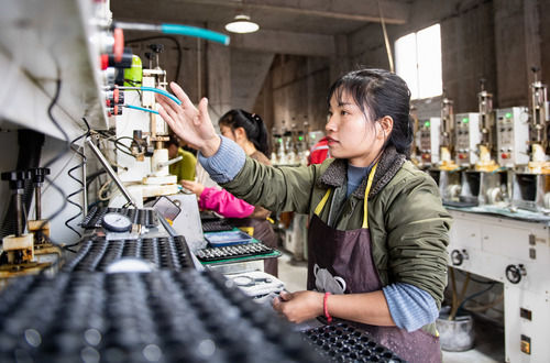 村民在云南省鎮(zhèn)雄縣林口鄉(xiāng)木黑村扶貧車間內(nèi)制作光學(xué)鏡片(11月12日攝)。新華社 記者王冠森/攝