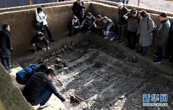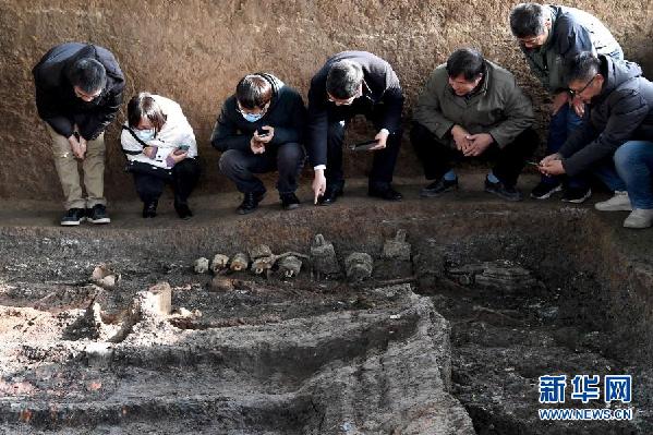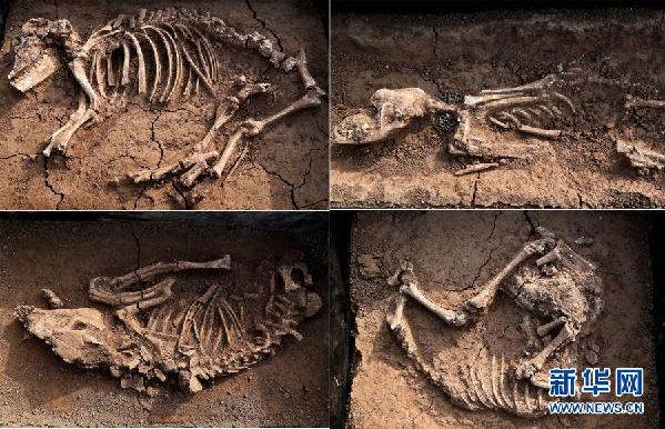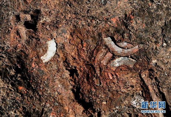 這是河南洛陽徐陽墓地標(biāo)號(hào)為M15的墓葬周邊祭祀遺存內(nèi)出土的動(dòng)物遺?。ㄆ窗嬲掌?,11月27日攝)。新華社記者 李安/攝
