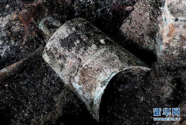 這是河南洛陽徐陽墓地標(biāo)號(hào)為M15的墓葬出土的銅鏃(11月27日攝)。新華社記者 李安/攝