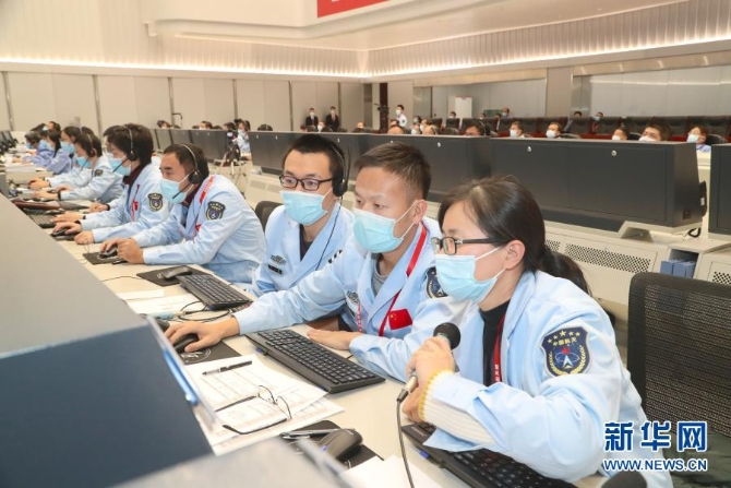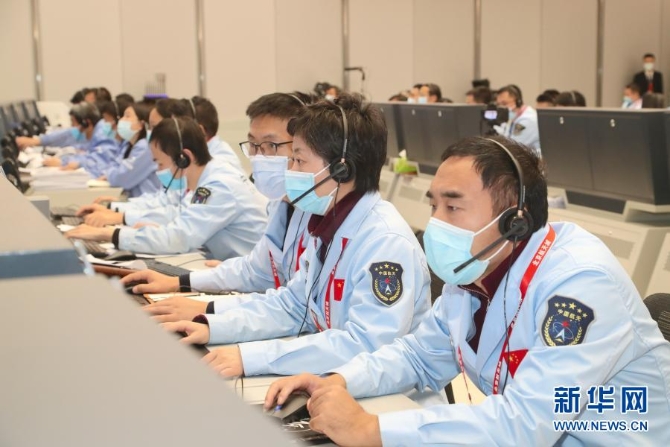 11月29日,航天科技人員在北京飛行控制中心工作。新華社發(fā)(北京航天飛行控制中心供圖)