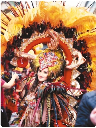 盛裝打扮的演員在馬耳他首都瓦萊塔參加狂歡節(jié)巡游活動。 新華社記者 袁 韻/攝
