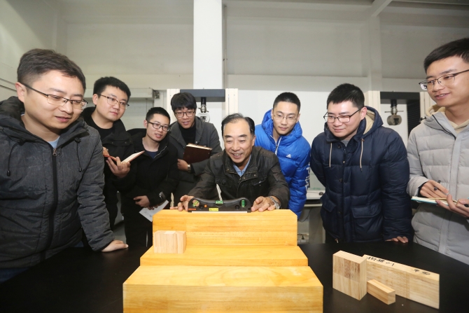 圖片說(shuō)明:空間力學(xué)團(tuán)隊(duì)徐家福高級(jí)工程師(右四)與團(tuán)隊(duì)成員測(cè)試著陸器各種試驗(yàn)面的材料參數(shù)