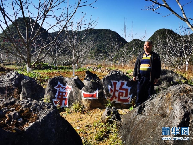 劉登榮在木者村么石谷炸響炸石造地第一炮的地方(11月20日攝)。新華網(wǎng) 羅春明 攝