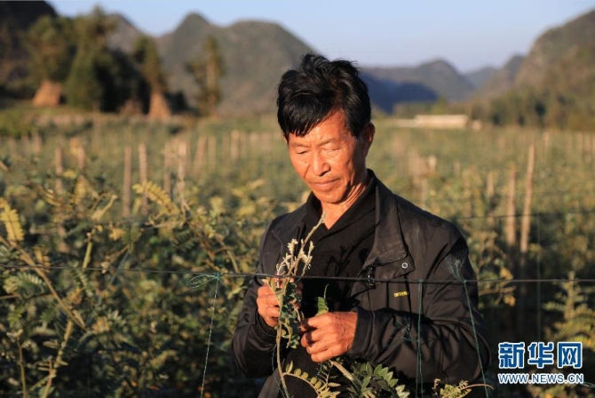 程墩儒在500畝山豆根種植基地內(nèi)(11月20日攝)。新華網(wǎng) 羅春明 攝