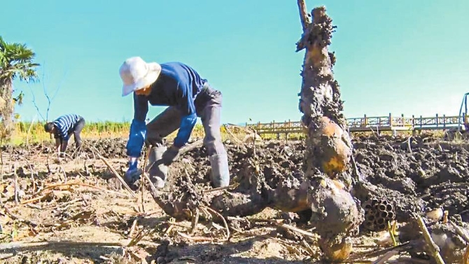 每個挖藕人每天都能挖上百市斤