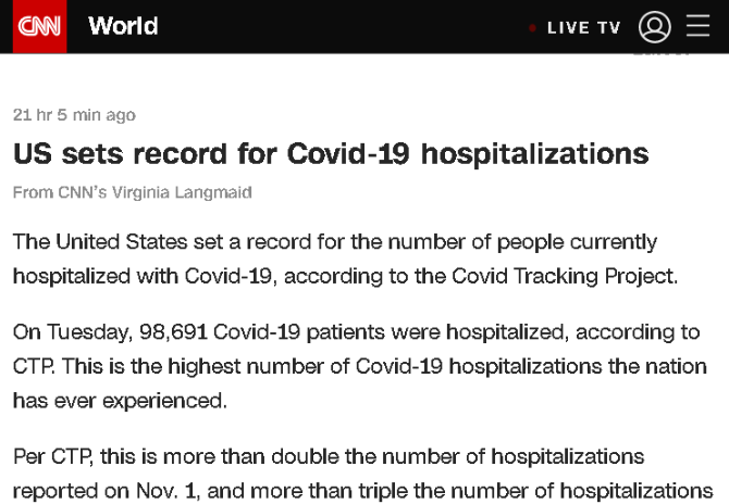 △CNN稱,美國創(chuàng)新冠疫情住院紀錄