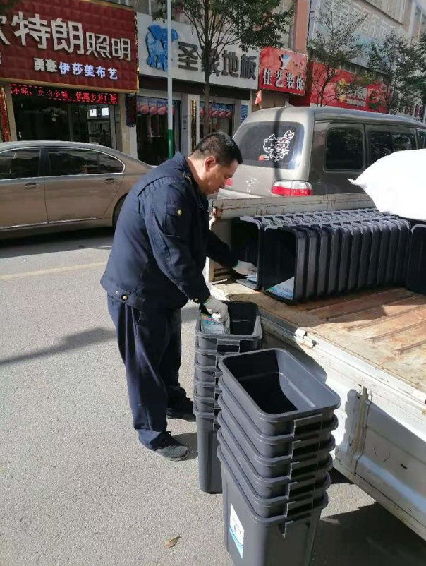 連日來,祿勸縣城管局集中精力開展縣愛國衛(wèi)生“7個(gè)專項(xiàng)行動(dòng)”,以落實(shí)“門前三包”責(zé)任制為抓手,用實(shí)際行動(dòng)為愛國衛(wèi)生運(yùn)動(dòng)“加分”。縣城管局多方籌措資金,購置5000只黑色小垃圾桶,在五星路、秀屏路、掌鳩河南北路等路段,為商戶發(fā)放統(tǒng)一型號(hào)、統(tǒng)一標(biāo)識(shí)的“門前三包”專用垃圾桶,旨在引導(dǎo)商戶履行好“門前三包”責(zé)任,做到垃圾不落地?!敖值郎媳纫郧案蓛舳嗔耍覀兇驋吡恳矝]有那么大了?!必?fù)責(zé)秀屏路清掃的一位環(huán)衛(wèi)工人說。