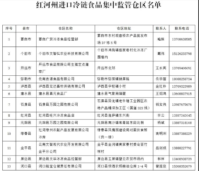一、我州在13個(gè)縣市各設(shè)立1個(gè)進(jìn)口冷鏈?zhǔn)称芳斜O(jiān)管倉(cāng)區(qū)。自2020年12月5日零時(shí)起,凡從省外進(jìn)入我州儲(chǔ)存、加工、銷售的進(jìn)口冷鏈?zhǔn)称?必須進(jìn)入各縣市集中監(jiān)管倉(cāng)區(qū)進(jìn)行預(yù)防性消毒和采樣核酸檢測(cè),并取得出庫(kù)證明。從省內(nèi)進(jìn)入我州的進(jìn)口冷鏈?zhǔn)称?必須取得省內(nèi)集中監(jiān)管倉(cāng)區(qū)出庫(kù)證明、進(jìn)口冷鏈?zhǔn)称坟浳飿I(yè)經(jīng)消毒證明和核酸檢測(cè)報(bào)告,方可在我州儲(chǔ)存、加工、銷售。