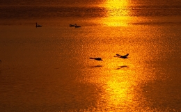 12月6日,天鵝在北京市懷柔區(qū)懷柔水庫里飛翔。 近日,大批遷徙的天鵝來到位于北京市懷柔區(qū)的懷柔水庫,成為冬日里一道生態(tài)美景。 新華社記者 楊文斌 攝