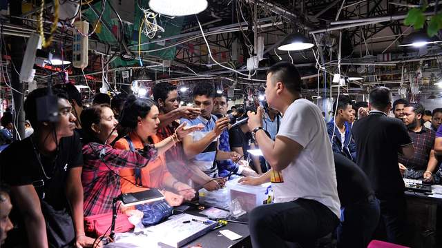 進(jìn)入瑞麗姐告玉城手鐲區(qū),記者看到現(xiàn)場(chǎng)人頭攢動(dòng),不少游客和收藏愛好者到這里"淘寶"。攤位上,各種款式和顏色的翡翠琳瑯滿目;攤位旁,顧客們忙著了解、挑選、試戴和詢價(jià)。在現(xiàn)場(chǎng),一個(gè)包裝好近百個(gè)翡翠商品的攤位吸引了記者的目光。原來,這些翡翠是供給夜市直播間的貨。老板說:"我是浙江人,因?yàn)槁糜螑凵狭嗽颇?在瑞麗做了十多年的翡翠生意了。以前,我做線下銷售,現(xiàn)在,線上線下銷售都做。我們給多個(gè)直播平臺(tái)供貨,收入也挺不錯(cuò)的。"
