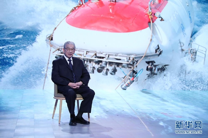 中國(guó)工程院院士、載人潛水器“蛟龍?zhí)枴笨傇O(shè)計(jì)師徐芑南講述探索神秘海底世界背后的故事。新華網(wǎng) 焦鵬 攝