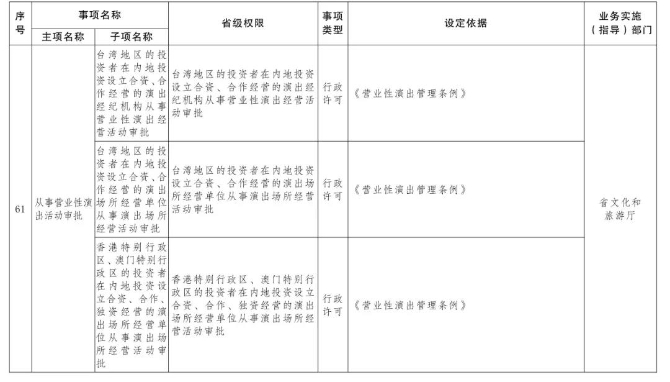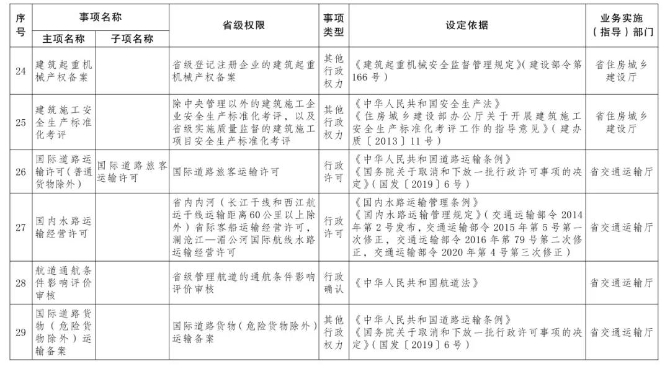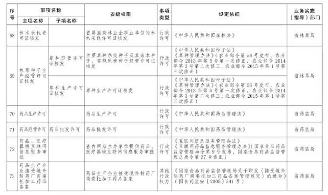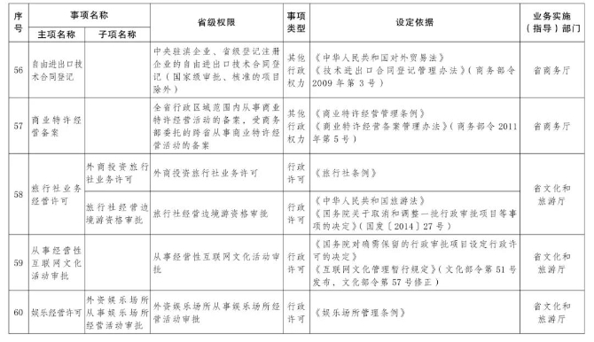 管委會下放第一批省級管理權限的目錄