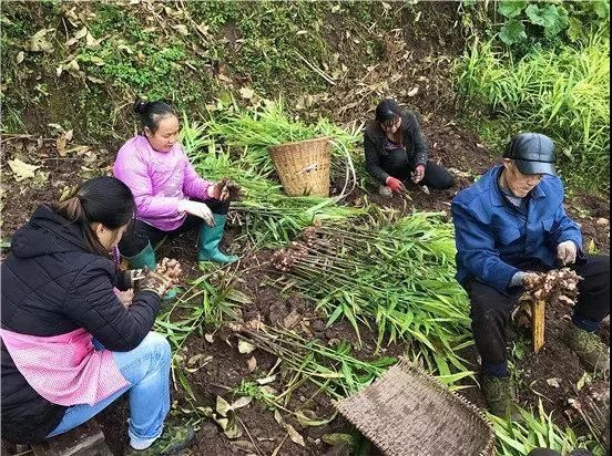 同心村村民正在采收生姜。