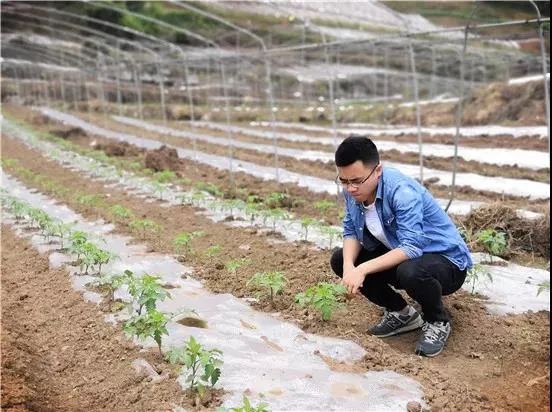 鄒星在地里查看蔬菜基地番茄長勢。