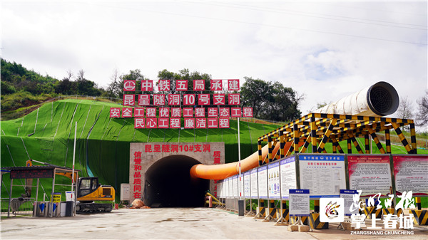 中鐵五局承建參建的昆呈隧洞是全線第二長(zhǎng)隧,全長(zhǎng)56.58公里,具有主洞線路長(zhǎng)、合同工期長(zhǎng)、圍巖變化大、物流組織難度大、社會(huì)關(guān)注度高、安全風(fēng)險(xiǎn)高、環(huán)水保要求高的“兩長(zhǎng)兩大三高”特點(diǎn),施工難度和風(fēng)險(xiǎn)極大。昆呈隧洞10號(hào)施工支洞(平支洞)全長(zhǎng)1019.571米,支洞與主洞交點(diǎn)里程為KCT32+547.559,支洞洞口洞底高差為90.50米,支洞坡度為9.22%。施工支洞斷面采用城門洞型,平洞凈空斷面尺寸為7.5m×6.0m(寬×高)。