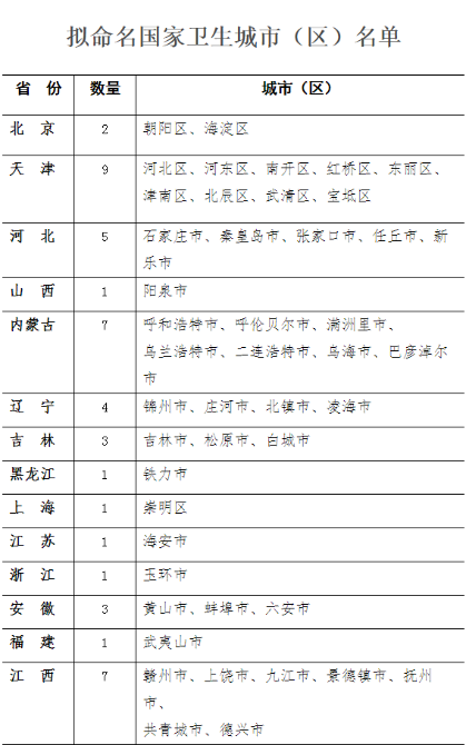 擬命名為國家衛(wèi)生城市(區(qū))