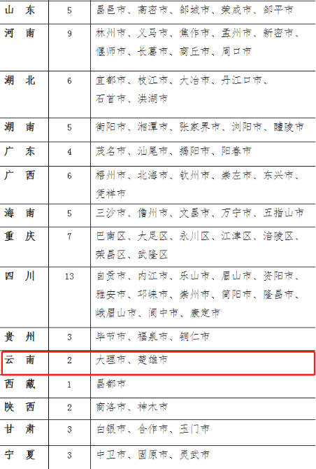 云南大理市、楚雄市