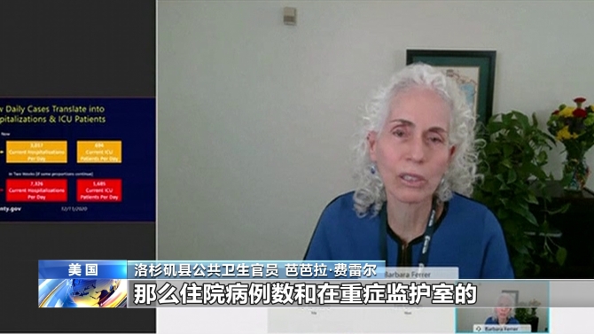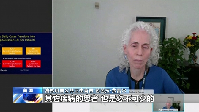 洛杉磯縣公共衛(wèi)生官員 芭芭拉·費雷爾:本周我們每天平均新增病例大約10200例,如果住院病例數(shù)繼續(xù)按當(dāng)前比例增加,兩周內(nèi)我們可能看到超過7300名患者因新冠肺炎住院。其中1600多名可能需要在重癥監(jiān)護(hù)室治療,這讓我們所有人擔(dān)憂,因為我們縣的醫(yī)院只有約2100張重癥監(jiān)護(hù)室的成人床位,而且這許多床位對于包括受外傷、接受心臟手術(shù)和癌癥治療等其它疾病的患者,也是必不可少的。