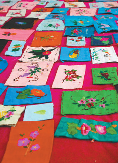 貴州省黔東南苗族侗族自治州臺(tái)江縣施洞小學(xué)學(xué)生刺繡作品。