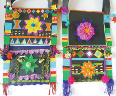 云南省西雙版納傣族自治州景洪市勐龍鎮(zhèn)曼別小學(xué)學(xué)生制作的書包。
