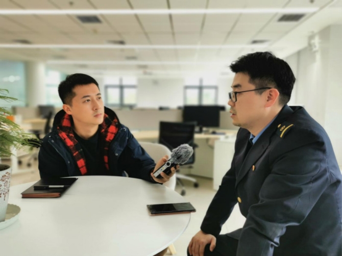 記者江曉晨采訪西安西站業(yè)務科副科長劉強