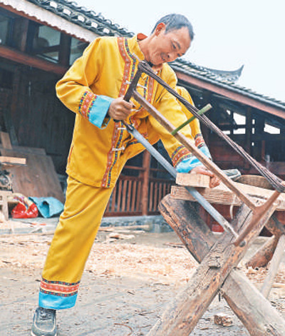李俸玉就是一名實(shí)干的村民。從合作社展銷中心走出來,沿著蜿蜒的水泥路,便來到俸玉農(nóng)家樂。院子中間有一口臺子,前來旅游的王先生正在體驗(yàn)當(dāng)?shù)靥厣椖俊按螋亵巍?。李俸玉抱著剛進(jìn)的貨,正房前屋后地忙碌著。“自從通了公路,周末、節(jié)假日來的游客就多了起來;這不,臘肉都供不應(yīng)求了?!闭f話間,笑容掛在李俸玉的臉上……