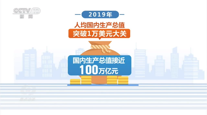 全面建成小康社會離不開雄厚的物質(zhì)基礎(chǔ)。改革開放以來,我國經(jīng)濟實力大幅躍升。2019年,國內(nèi)生產(chǎn)總值接近100萬億元,人均國內(nèi)生產(chǎn)總值也從改革開放初期的幾百美元突破1萬美元大關(guān)。