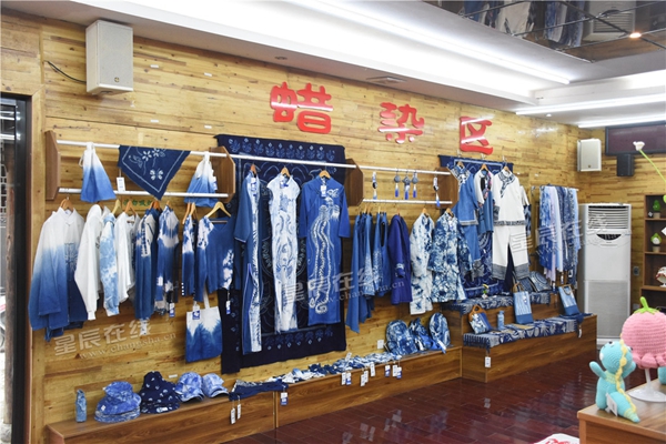 (頗具少數(shù)民族風情的蠟染服飾。)