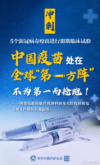 相關(guān)方面正在繼續(xù)科學(xué)嚴謹推進疫苗Ⅲ期臨床試驗,嚴格按照法律法規(guī)和國際認可的技術(shù)標準做好審評審批工作,確保疫苗安全有效,經(jīng)得起各方面檢驗,經(jīng)得起歷史檢驗。