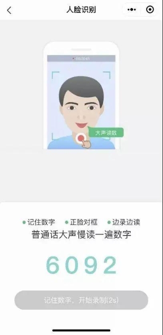 眨眼認(rèn)證:當(dāng)你出現(xiàn)在圓框內(nèi),請正面對準(zhǔn)圓框,眨眨眼、點(diǎn)點(diǎn)頭完成認(rèn)證。讀數(shù)認(rèn)證:當(dāng)屏幕出現(xiàn)4位數(shù)字,需要讀數(shù),請正面對屏幕,一邊讀數(shù)字一邊錄像進(jìn)行認(rèn)證。