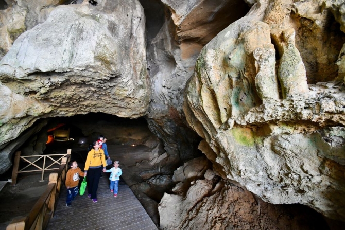 游人在位于福建省三明市三元區(qū)巖前鎮(zhèn)的萬壽巖遺址船帆洞游覽(4月9日攝)。新華社記者 姜克紅 攝