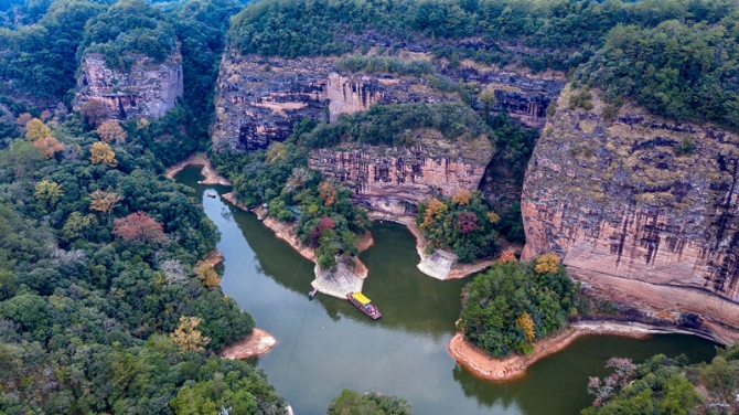 這是12月9日拍攝的福建省三明市泰寧縣大金湖景區(qū)的水上丹霞景觀(無人機照片)。新華社記者 姜克紅 攝