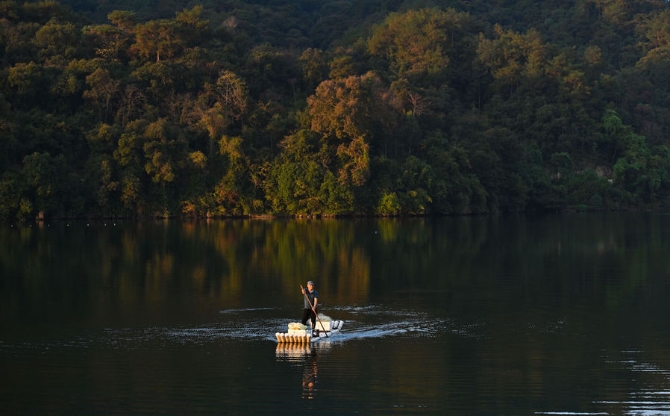 當(dāng)習(xí)近平同志乘坐的竹排行于溪流時(shí),一條鯉魚(yú)突然躍上竹排,正好落在他的腳邊。