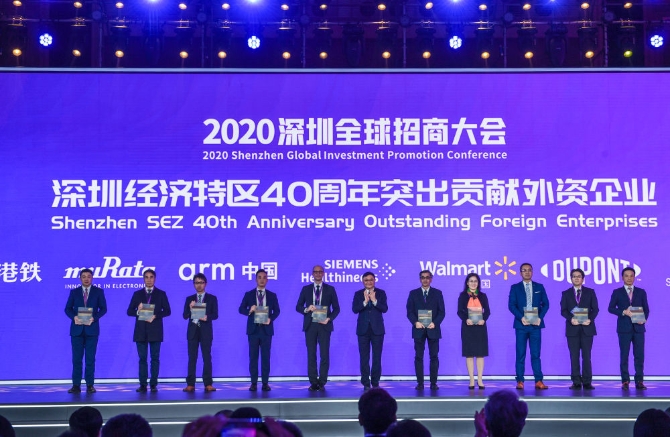 12月8日拍攝的深圳經(jīng)濟(jì)特區(qū)40周年突出貢獻(xiàn)外資企業(yè)頒獎(jiǎng)儀式。 新華社記者 毛思倩/攝
